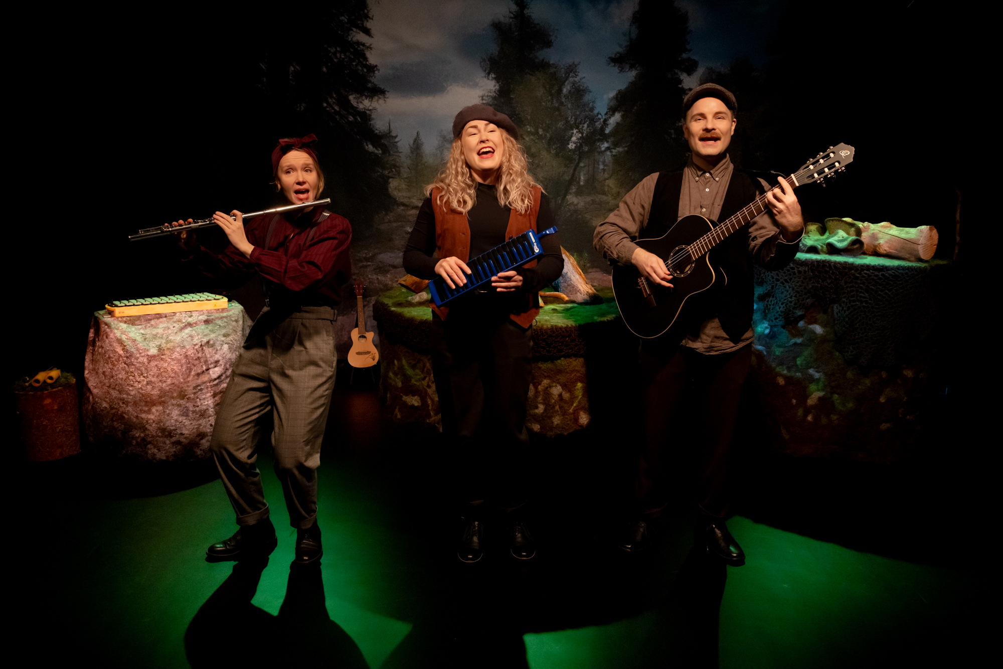 Metsäiseen seikkailuun meidät johdattaa elävä musiikki ja Anna-Liisa Tarvaisen hurmaavat nuket. Teatteri Mukamaksen syksyn 2025 uutuus kutsuu kokemaan metsän ihmeitä.